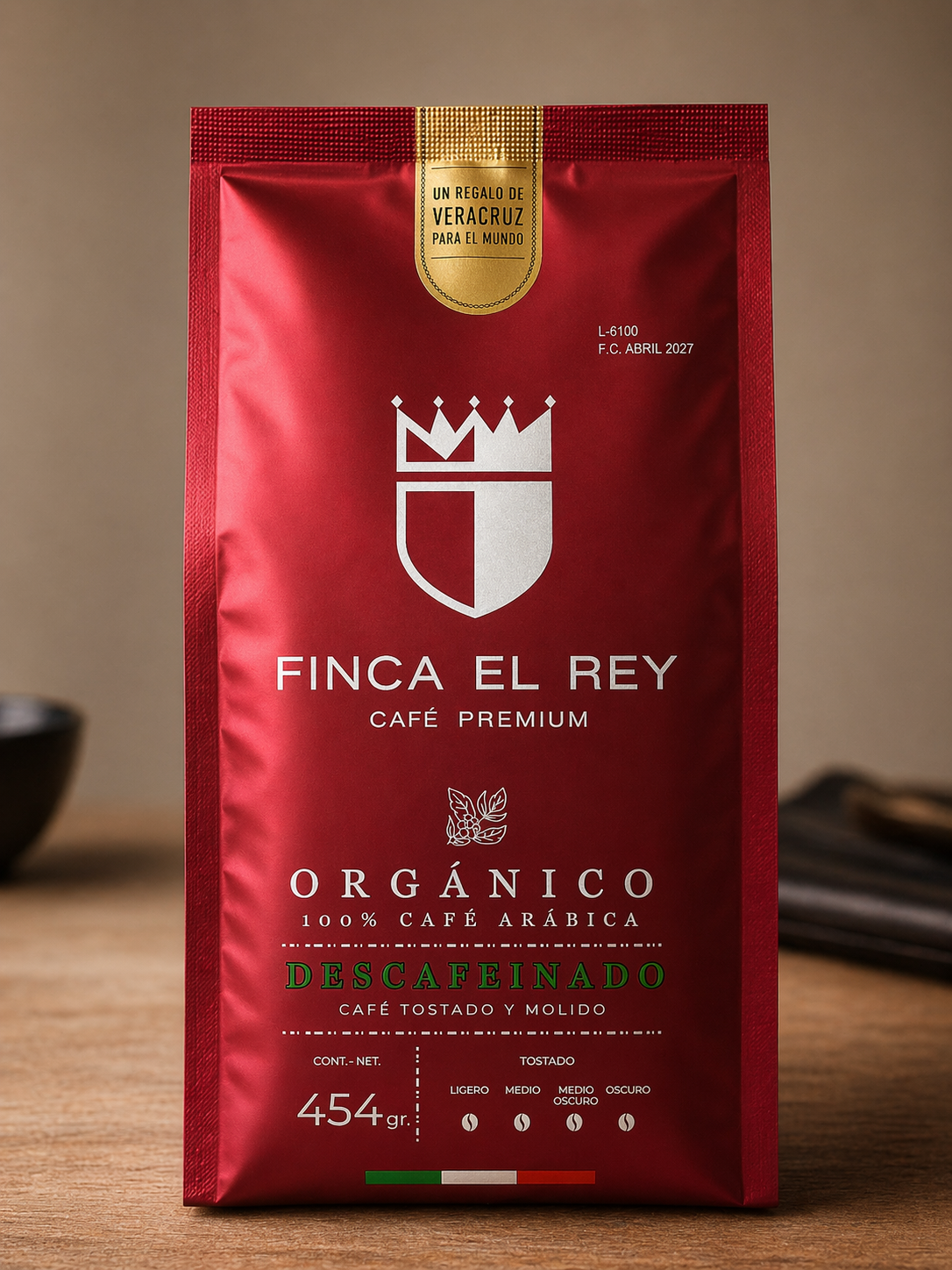 Café Finca el Rey Descafeinado, café tostado molido en bolsa metalizada, presentación de 454gr (1Lb)